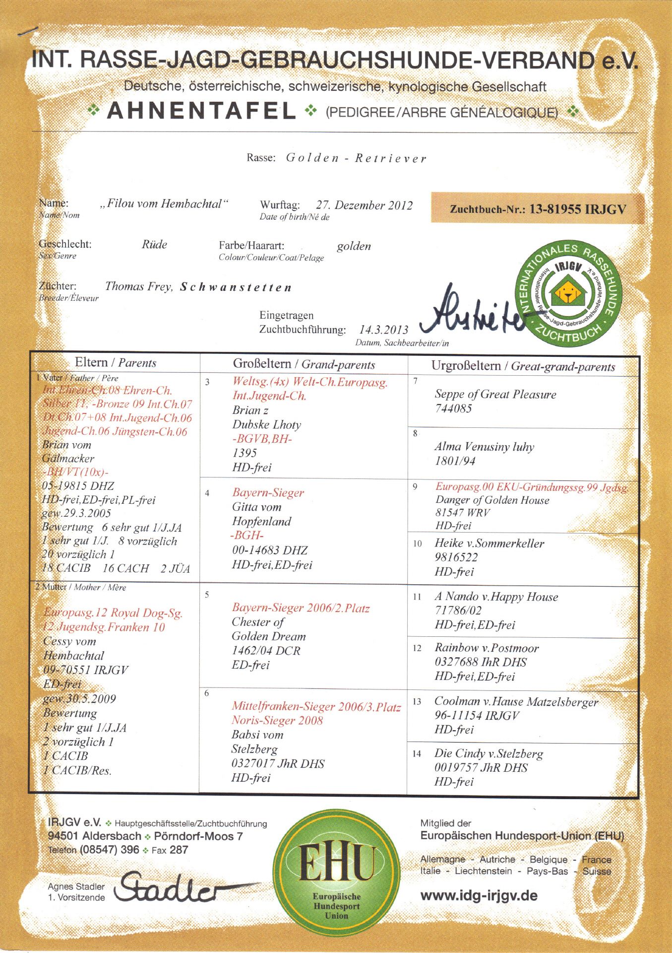 Der folgende Weblog soll der Familie ermöglichen über ihr Admin-Passwort Bilder und Kurztexte auf unserer Homepage einzustellen, um so die weitere Entwicklung unseres "Hembachtalers"zu dokumentieren.Wir die Züchter vom Hembachtal würden uns natürlich sehr freuen wenn wir ab und zu ein aktuelles Bildchen vorfinden würden, um weiterhin am Leben und der Entwicklung unserer Zöglinge teilhaben zu dürfen. (Achtung beim Passwort muß Groß- und Kleinschreibung berücksichtigt werden.)