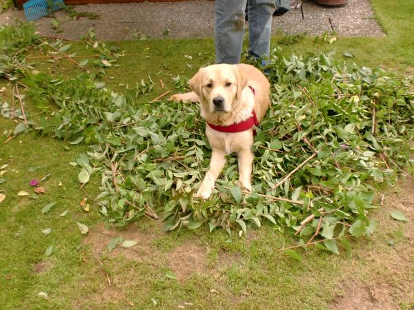 Bei der Gartenarbeit helfe ich fleißig mit... schließlich fällt da der ein oder andere Stecken für mich ab.