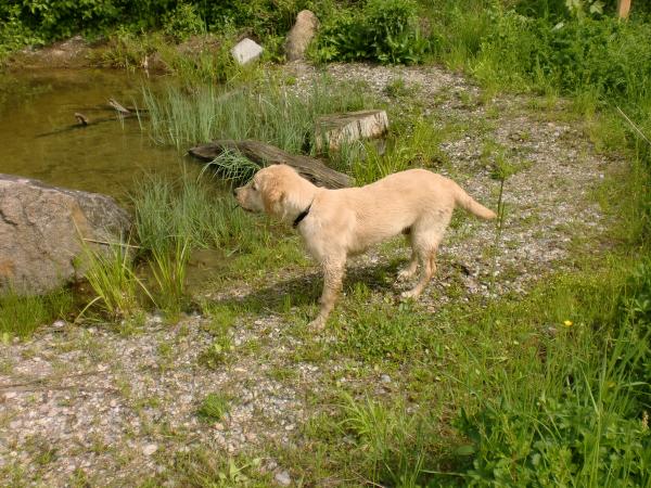 Das schönste an der Schule sind die Pausen, die verbring ich immer am/im Schulteich!